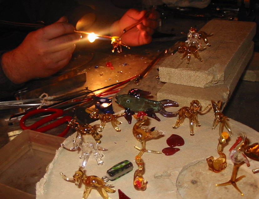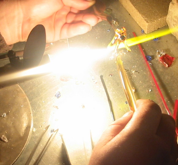 Radim pomocu stonog butanskog brenera.Staklo se moze topiti i drugim metodama,svaka metoda ima svoje prednosti i mane.Rad brenerom omogucuje svestraniji rad i omogucuje neselektivno bavljenje staklarskom umetnoscu.Zelim da deo brenerskog rada i lepotu stakla prezentujem na jedan poseban nacin i da svi posetiocu uzivaju....